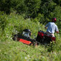 The PRO XL44T brings big power to brush mowing with a massive 20 HP Briggs and Stratton V-Twin engine. Brush up to 3 inches in diameter and thick field grass up to six feet high. The reserve power lets you cruise at faster speeds, mowing up to two acres per hour. Remote control operation lets you start and stop the engine from your tow vehicle and engage (or disengage) the cutting blade. A full pressure oil pump ensures excellent lubrication, even on hilly terrain.